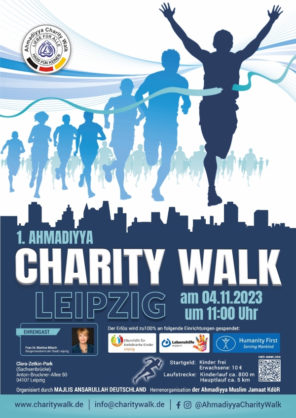 Am 4. November 2023 findet der erste Ahmadiyya Charity Walk in Leipzig statt. Der Erlös geht an die Elternhilfe für Krebskranke Kinder Leipzig e.V., den Humanity First e.V. und den Lebenshilfe Leipzig e.V.
