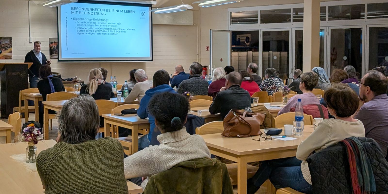 Gestern Abend hielt Vorstandsmitglied und Rechtsanwalt Christian Zoller einen Vortrag zum Behindertentestament für unsere Vereinsmitglieder. Er ist seit vielen Jahren Fachanwalt für Erbrecht, zertifizierter Testamentsvollstrecker und leitet erfolgreich eine Anwaltskanzlei in Leipzig.
