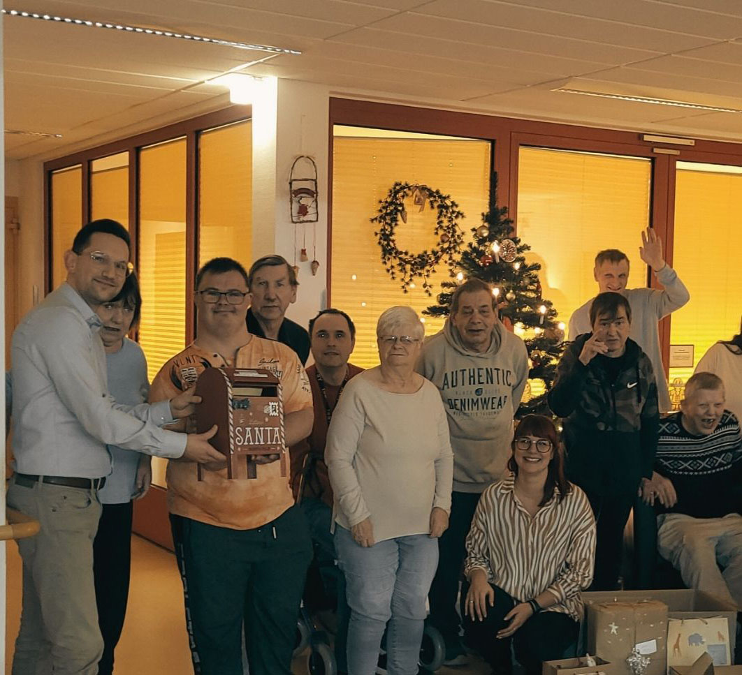 Eine Spendenaktion fand im Haus Rosenweg statt, bei der Herr Sander, Mitarbeiter des Bauunternehmens GOLDBECK, Spenden an die Bewohnerinnen und Bewohner überreichte. Diese Aktion löste sehr viel Freude aus und unterstrich die weihnachtliche, besinnliche Stimmung.